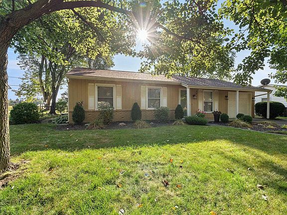 Charming 3-bedroom, 1-bath ranch in Fort Wayne with a bright living area and spacious family room featuring cathedral ceilings, built-ins, and a cozy fireplace. The kitchen offers white cabinetry, updated appliances, and an open flow into the dining and family areas. The bathroom includes a dual-sink vanity and a newer walk-in shower. Updates within the last 5 years include a new sliding back door, recessed lighting, fresh interior/exterior paint, and new carpet in the living room. A new HVAC system was installed in 2021 and recently serviced. Outdoors, enjoy a large fenced backyard with a patio, mature trees, and storage shed—all backing up to an open field with no neighbors behind you. An attached garage adds storage and convenience. Move-in ready—schedule your showing today!