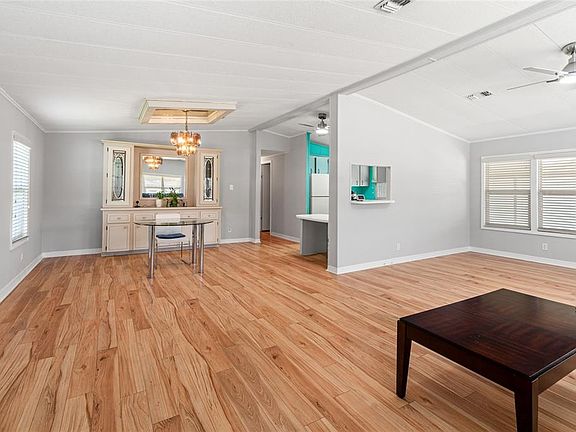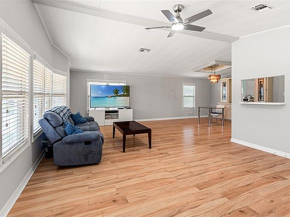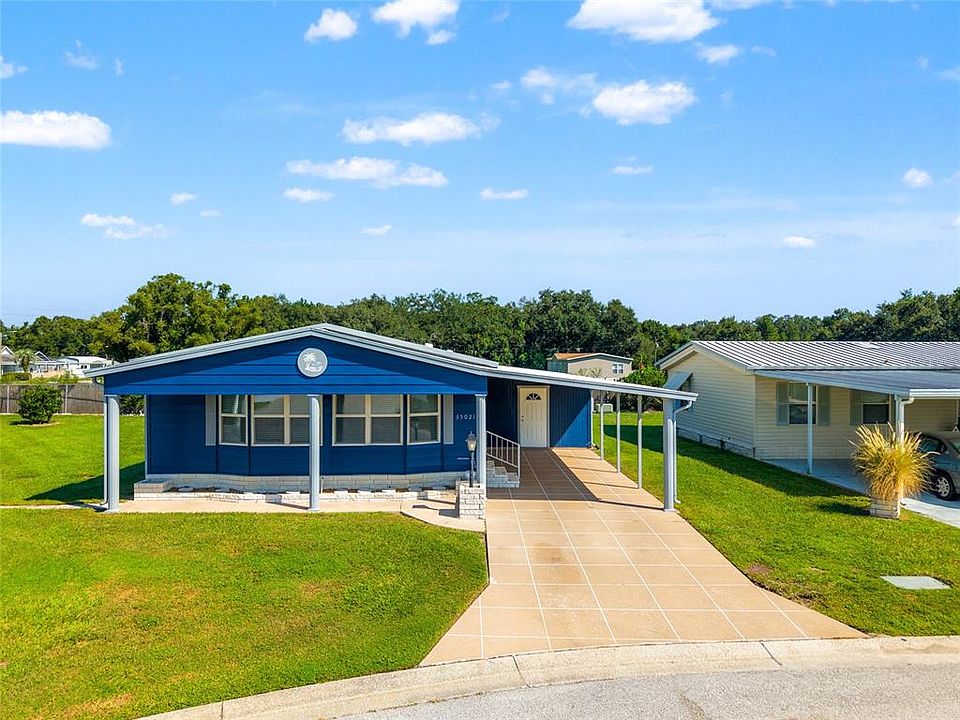 Welcome to 35021 McCullough’s Leap, located in the highly desirable Colony Hills community of Zephyrhills. This spacious and inviting home offers a comfortable layout designed for both everyday living and entertaining. From the moment you arrive, you’ll appreciate the cheerful blue exterior, wide driveway, and covered carport that provide excellent curb appeal and plenty of parking space. Inside, the open floor plan welcomes you with natural light streaming through multiple windows, highlighting the beautiful wood-look floors that extend through the main living areas. The expansive living room is perfect for relaxing or gathering with friends and family. The dining area connects seamlessly to the kitchen, creating a natural flow for mealtime or entertaining. The kitchen offers plenty of cabinet space, a breakfast bar, and cheerful accents that add to the home’s character. Just off the kitchen, a large laundry room provides additional storage and workspace as well as access to the third bedroom. This home features three bedrooms and two full bathrooms, including a comfortable primary suite with an ensuite bath offering dual vanities and a step-in shower. The additional bedrooms and bath provide plenty of space for guests or hobbies. Outdoor living is just as enjoyable with a covered front porch that makes a great spot for morning coffee or evening relaxation. The extended driveway and carport make it easy to accommodate both residents and guests. As part of Colony Hills, you’ll enjoy access to wonderful community amenities, including a clubhouse, swimming pool, multi-sport courts (Tennis/Pickleball/Basketball), and shuffleboard courts. The neighborhood also offers a welcoming atmosphere with opportunities to connect with neighbors through social activities and events. Located just minutes from shopping, dining, medical centers, and the charm of downtown Zephyrhills, this home combines comfort, convenience, and community. Schedule your showing today and discover all that 35021 McCullough’s Leap has to offer.