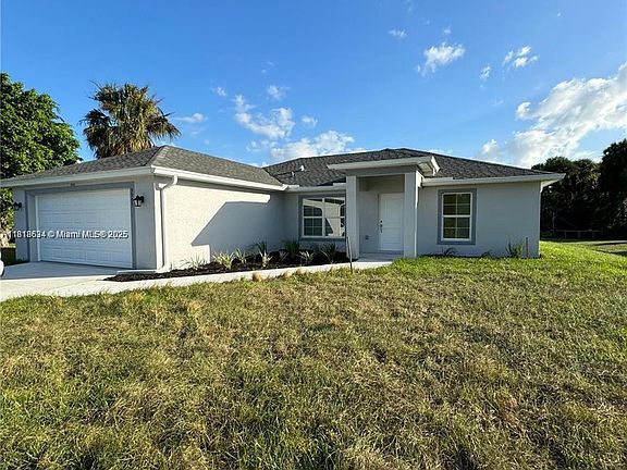 This beautiful new construction home, built in 2023, offers 4 spacious bedrooms and 2 modern bathrooms within 1,614 sq ft of comfortable living space. Situated on a generous 0.25-acre lot in the desirable Lehigh Acres community, this residence features paved roads and convenient access to local amenities. Perfect for families or investors seeking a move-in ready property with potential for customization. Don?t miss the opportunity to own a modern home in a growing neighborhood with easy access to Southwest Florida attractions.