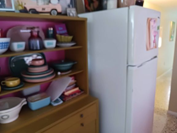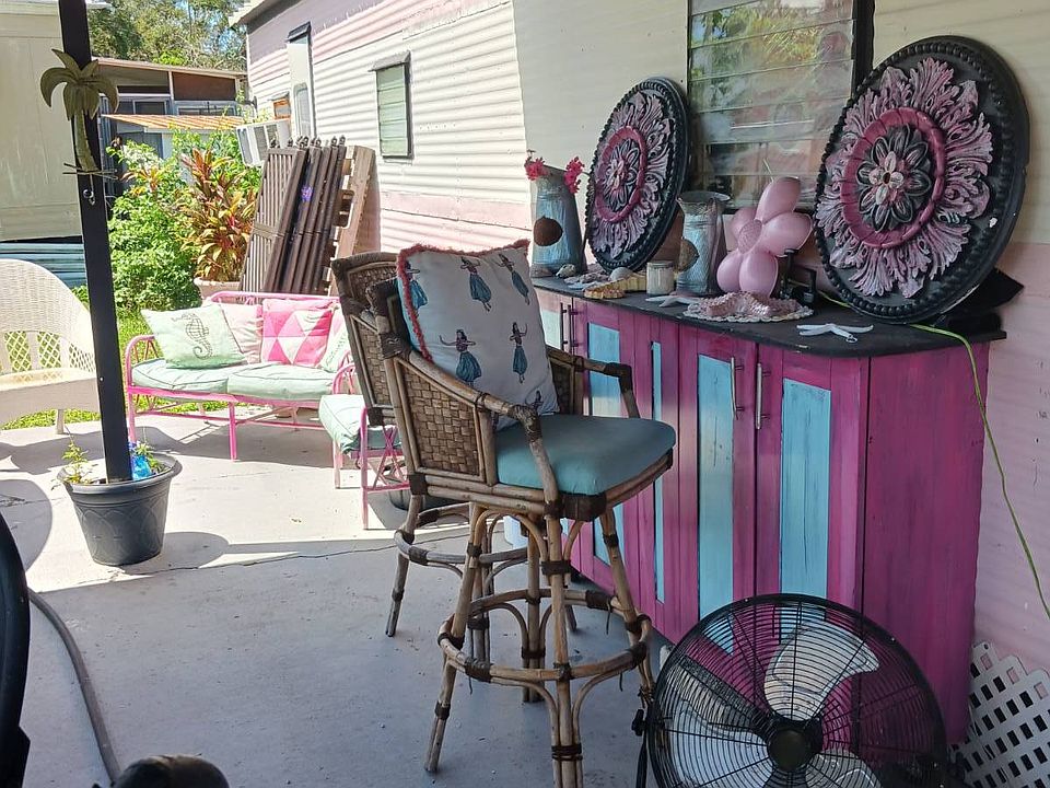 Welcome to this 1957 Era mobile home that was completely redone in the style of the that time. The new subfloors are soild & have new 1950's style Terrazzo vinyl decorative flooring. The bathroom is completely new! New bath tub & accented with a vintage pink sink!! This is an absolutely adorable retro mobile home. Little Pinky, has one bedroom, one bath, a nicely updated kitchen, cozy living room, and the covered carport / patio extends the living space. 55+ community, lot rent is $550, close to shopping & beaches , zone X- non Flood. Great if you want a 2nd home in Florida that's affordable, or year round affordable living. Must see this lil gem in person to appreciate. Call today!