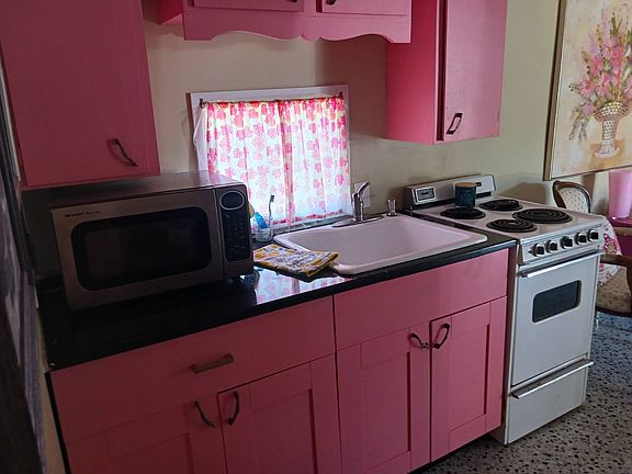 New subfloorsUpdated kitchenVintage pink sink