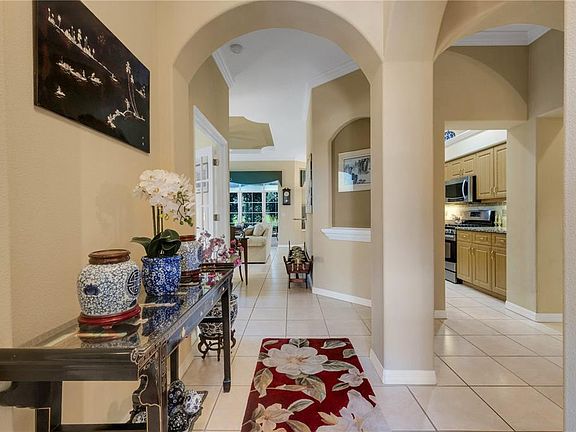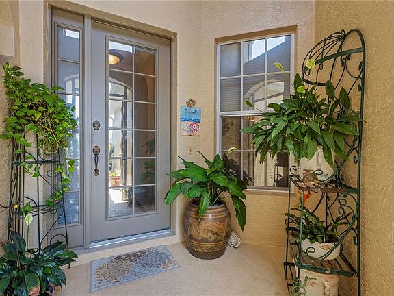 Welcome to this beautifully appointed 2-bedroom, 2-bathroom home with a versatile office/den that easily functions as a third bedroom. The one owner thoughtfully designed split floor plan provides optimal privacy for both owners and guests. Just off the kitchen, a formal dining room offers the perfect space for hosting dinner parties, while a cozy café-style breakfast nook is ideal for casual meals or enjoying your morning coffee with serene views of the water and surrounding wildlife. The cook’s kitchen is a standout, featuring stainless steel appliances, ample cabinetry, granite countertops, a breakfast bar, and a spacious closet pantry. The expansive owner's suite comfortably fits a king-size bed with space for a sitting area by the window, and includes both a walk-in closet and a second closet, as well as private access to the lanai. The ensuite bathroom is equally impressive, boasting a large walk-in shower, a garden tub, dual vanities, generous counter space, and additional storage. Everyday living is made easier with a well-equipped laundry room offering a sink, washer and dryer, and upper cabinets. The attached 2-car garage includes a pull-down ladder to attic storage, providing even more room for your belongings. This is the coveted Ashton model, the largest floor plan available. Notable upgrades include crown molding, plantation shutters, arched inset walls, elegant tray ceilings, and a spacious screened lanai. Custom outdoor enhancements include a charming pergola adorned with jasmine and staghorn ferns, as well as upgraded easy-lift blinds with stylish valances. Roof replaced in 2021, air handler 2023 annually serviced. Located in Timberly, a low-HOA, no-CDD community offering a sparkling pool, tranquil water views, and preserved wetlands, this home provides a true sense of peace and privacy. With quick access to I-75, you’re minutes from Bradenton, St. Pete and Sarasota. Publix and other daily conveniences are just around the corner, walkable, even! Don’t miss your opportunity to own this slice of paradise. Schedule your private showing today!