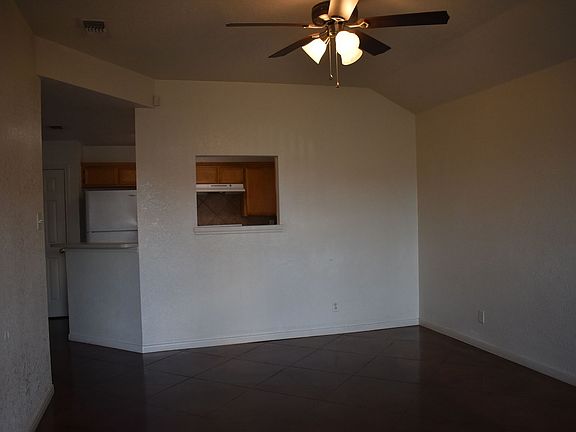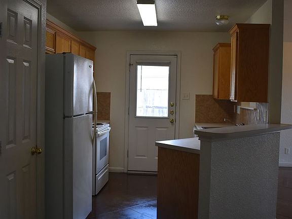 This duplex apartment is offering 3 bedrooms, 2 bathrooms, a 1 car garage, and 1,295 square feet of space. The flooring throughout the home is etched custom concrete that looks just like ceramic tile. The eat in kitchen is complete with a stove, refrigerator, dishwasher, ceramic tile backsplash, pantry, extended cabinets and countertop space, backyard access, and double sink with disposal. All of the bedrooms have ceiling fans, but the master bedroom has an en suite bath and a walk-in closet. The master bathroom comes with a double vanity and garden tub/shower combo. Additional amenities include a built-in desk, trey ceiling in the master bedroom, covered porch, and a fenced yard. Call today as this one will not last!
