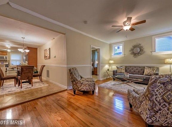 Brimming w/ appeal & warm livability, this elegant renovation awaits your personal touch! Plenty of space for you and your family w/4BRs, 3 full baths including 1 in basement for added living space. Main lvl master BR w/en-suite bathroom & exquisite details throughout: gleaming HW floors, crown molding, chair railing, Chefs kit w/granite counters, SS appliances & tile backsplash. Private driveway.