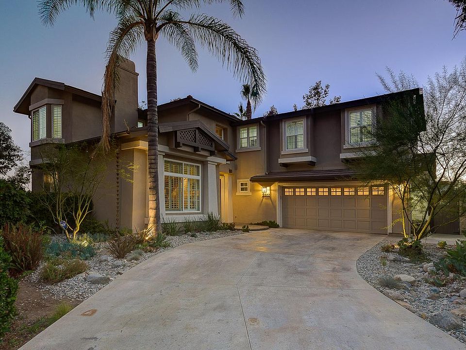 Remodeled modern elegance blends wonderfully with the historic beauty of the San Gabriel Valley in this La Vina home. A manicured, naturally landscaped yard leads to the front entrance where a grand stained wood and iron staircase greets all who enter. Three bedrooms rest upstairs, including the master suite that provides a private sanctuary with ample closet space, its own sitting room/lounge, marble shower, and bay-windowed tub. Downstairs, a large fireplace keeps the open family room cozy. The adjacent kitchen, equipped with a walk-in pantry, a fridge-sized wine chiller, a quartz-topped island, and large sliding glass doors, open up to a backyard oasis. A pergola-covered patio flows onto a large veranda with unobstructed city and valley views--perfect for entertaining. Around the side of the house resides a private pool, spa, and built-in outdoor BBQ and bar. Enjoy hiking in the tranquil mountains while also being minutes from the Rose Bowl, Old Pasadena, restaurants, shops and entertainment and just 15 miles to downtown LA. La Viña provides a serene, majestic setting and offers a playground and resort-style pool. Welcome home.