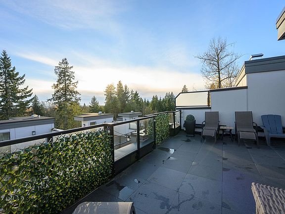 AMAZING ROOFTOP DECK! This bright 3 bed plus den and 3 bath townhome in Burke Mountain offers a rare 600 plus square foot private rooftop retreat complete with a soothing hot tub and open mountain views. It is an inviting space for quiet mornings, outdoor meals, and evening relaxation. Inside you will find 10 foot ceilings, wide plank floors, generous windows, and a well designed kitchen with quartz surfaces, a gas stove, stainless appliances, and a large island. The upper level includes three comfortable bedrooms, a walk in closet, and ensuite in the primary. Year round comfort comes from AC and forced air heating plus a tankless on demand hot water system. A side by side garage with epoxy flooring and added storage completes this impressive home.