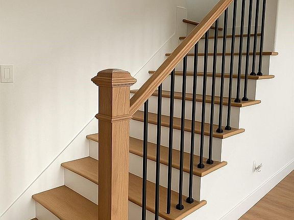 Generous backyardAbundant natural lightFresh carpetBathroom upgradesSpacious kitchenStylish wooden staircaseLarge upgraded island