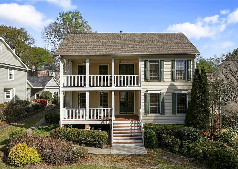 Beautiful light filled home in an amazing location in Sandy Springs. Open concept with windows galore and an abundance of natural light throughout. Great outdoor spaces, double french doors opening to two porches on the main and second floor. Large deck in rear and beautiful landscaped yard. Two story family room with stone fireplace opens to a large kitchen and breakfast room. Kitchen has tons of storage, nice appliances, stone backsplash, pantry, with a breakfast room. Oversized primary bedroom on the main with a fireplace and built in bookshelves. Large bath with separate vanities and big whirlpool tub with large walk in closet. Separate Dining room to fit a large table. Additional bedroom and full bath on the main level that would make a great den, guest bedroom or office. Spacious second floor with 3 large bedrooms, one ensuite bath and a jack and jill bath. The full almost finished basement is all bonus space and is over 2000 sf with a finished bath and tons of opportunity to make this space your own. There is a large 2 car garage. Home is in a small cul-de-sac neighborhood near parks and walking trails.