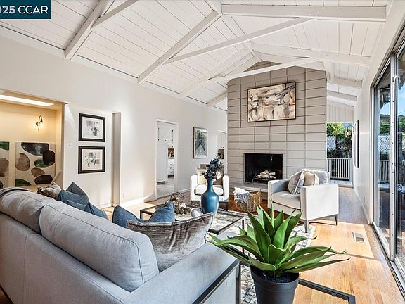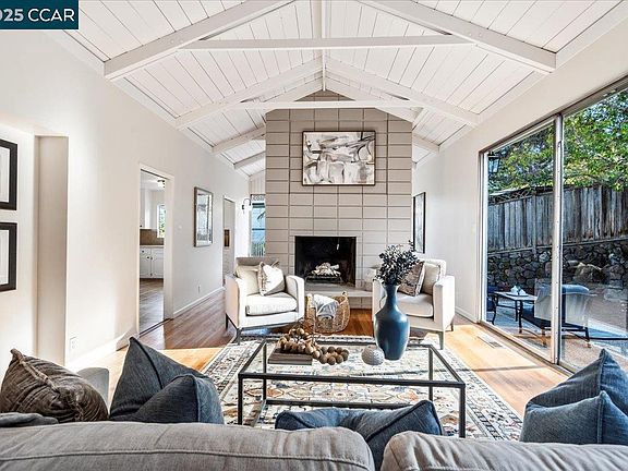 Mature redwood treesMultigenerational livingFloor to ceiling windowsSpacious level backyardGleaming hardwood flooringSpacious and functional layoutVaulted wood-beam ceilings