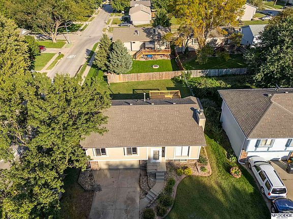 Beautiful 3-bedroom, 3-bath split-entry home located on a spacious corner lot in the Millard School District. Step inside to find soaring cathedral ceilings, tons of natural light and beautiful wood floors that create a warm, open feel throughout the main living areas. Fresh interior paint gives the home a modern, move-in-ready touch, while the new deck offers the perfect spot for relaxing or entertaining outdoors. Three bedrooms and three baths plus a finished lower level with fireplace and daylight window create plenty of comfortable living space. Fresh exterior paint enhances the home’s appeal, and the convenient location near Lake Zorinsky and area schools makes it easy to enjoy both recreation and community. This home combines updates, comfort, and a desirable location; don’t miss the opportunity to make it yours!