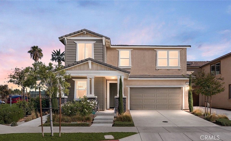 Set in Ontario’s desirable Shady Tree-Country Lane community, this newer Lennar home combines open living spaces with a layout that simply makes sense. Perfectly positioned on a corner lot, it offers an added sense of privacy and space with no immediate neighbor on one side and extra room to breathe both inside and out. From the moment you step inside, you’ll notice how natural it feels with light pouring in through wide windows, clean lines, and a seamless connection between the kitchen, dining, and living areas. The kitchen is stylish and practical with smooth stone counters, warm cabinetry, and plenty of space to cook, create, and gather. Just off the main living space, a downstairs bedroom and full bath make multigenerational living, hosting guests, or working from home easy. Upstairs, four additional bedrooms provide plenty of room for everyone. The primary suite feels calm and intentional, with a spacious walk-in closet and a private bathroom that offers double sinks and a relaxing retreat from the day. A junior suite with its own bath and two additional bedrooms create balance for family or guests, and the upstairs laundry room keeps daily life simple. Out back, the yard is ready for low-maintenance living: thoughtfully landscaped with turf and hardscape so you can spend less time working and more time enjoying. The home also includes free and clear solar, helping keep energy costs low year-round. Beyond your door, the Shady Tree–Country Lane community brings people together. Here, weekends often mean afternoons at the pool, kids playing on the playground, or casual get-togethers at the clubhouse. Ontario sits at the heart of Southern California - close to shopping at Ontario Mills and Victoria Gardens, surrounded by parks and walking paths, and within easy reach of freeways that make commutes and weekend getaways effortless. 3503 Tanager Drive is the kind of home that feels just right: modern but warm, polished but comfortable, and ready for the next chapter to begin.