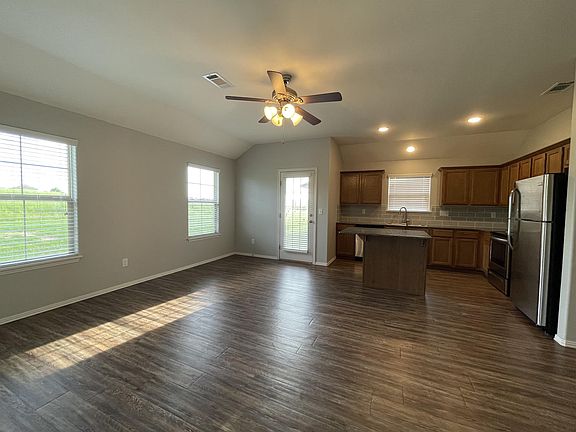 Back patioGranite countertopsStainless steel appliancesTile backsplashLed lightingCeiling fans