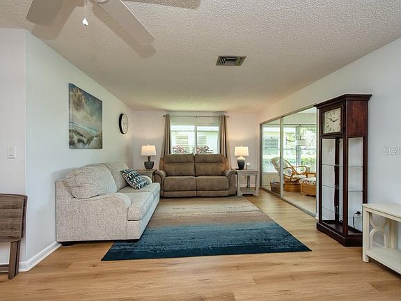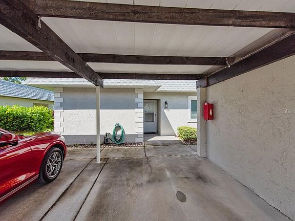 Golf course views, modern updates, and effortless living come together in this move-in-ready 2-bedroom, 2-bath condo offering 1,148 square feet of comfort and convenience. Step inside to find a bright single-story layout with brand-new flooring and a spacious living area that flows seamlessly into a versatile Florida/sunroom. Accessible from both the living room and the primary bedroom, this inviting space is ideal for morning coffee, quiet reading, or simply soaking in the serene golf course backdrop. The kitchen comes fully equipped with all appliances, and the sale also includes barely used furniture, creating a true turnkey opportunity. Both bedrooms are generously sized, while the two bathrooms provide comfort and privacy for owners and guests alike. Additional highlights include a covered carport with guest parking and a storage shed to keep everything organized. Peace of mind comes built in with an HOA that covers the roof, water, cable, and internet, making everyday living worry-free. With its fresh updates, golf course setting, and inclusive features, this condo offers the perfect balance of easy maintenance and a relaxed Florida lifestyle.