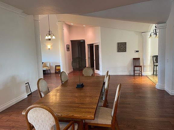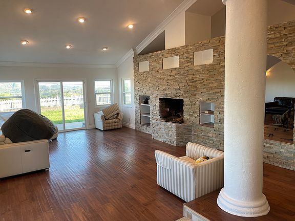 Fully furnished executive rental. Phone calls or text messages preferred. Property can be seen any day 8 am to 8 pm just let me know what time and day you prefer and give me at least an hours notice. Beautiful horse property with a single story house for rent complete with pool, jacuzzi, 2 waterfalls, 3 fireplaces and a 3 car attached garage. Freshly painted 7 bedrooms plus 5 bathrooms one is currently used as an office but has its own full closet and built in shelves and desk that could be used as 7th bedroom or a nursery complete with changing table. Amazing large open Kitchen with granite countertops and backsplash. Subzero side by side refrigerator/freezer, Wolf 48"dual fuel range. Total of 4 convection ovens 1 of which is in the Wolf microwave. The west wing features the Presidential Suite which has its own fireplace, a massive cedar lined walk in closet with shelves for holding 300 + pairs of shoes, a Very large natural slate tile shower area with three shower heads plus body sprayers, a separate triangular jacuzzi tub and even a bidet. Relax in the tub and enjoy the western views. The east wing also has a Master bedroom with a triangular jacuzzi tub. Humongous covered front porch faces the two Waterfalls with two stone fountains and fantastic northern views as you sit and enjoy a beach style fire pit. 8 ft high double door entry leads to a grand fully granite entryway that was built to impress. Wood floors in the 3 living areas and 7 bedrooms and natural stone tiles in the 5 bathrooms. Breath taking views from every part of the property and every room of the house. 5 minutes to the freeway yet out of audible range it offers an easy commute. We are on well water and have an amazing well with delicious water free of additives like chlorine and fluoride. This rental is everything south and west of the driveway and includes a 3 car garage. There is another house on the five acres that will be available to rent in a few months. Second house garage is below so top driveway and parking is exclusive to this rental and the dirt drive is for the second house or for access to back lot. Tennis court with basketball hoop. Children's playhouse and sandbox separately fenced off the back yard with amazing views. This place is a must see. Bring your gardener, horses round pen stables etc Property is fully fenced plus back yard and pool areas have additional fencing. Fully Furnished (optional) House with 6 beds 5 baths for Rent for professionals in the Murrieta valley. Less than 1 mile to Loma Linda Murrieta Hospital at the corner of Baxter and Menifee Road. Fully stocked kitchen and many condiments included, as well as cookware, silverware, everything you can imagine. utilities included: wifi internet, gas, electric, trash and water) Private master bedroom fully furnished
