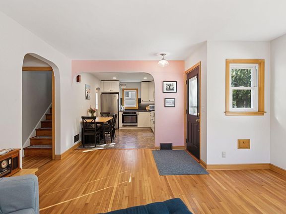 Welcome home to this well-maintained property that combines classic character with thoughtful modern updates. Sun-filled rooms highlight gleaming hardwood floors and a warm, inviting atmosphere throughout. The main level features a spacious living room and an updated kitchen with white cabinetry, abundant storage, stainless steel appliances, and casual dining—perfect for daily meals or gatherings with friends.