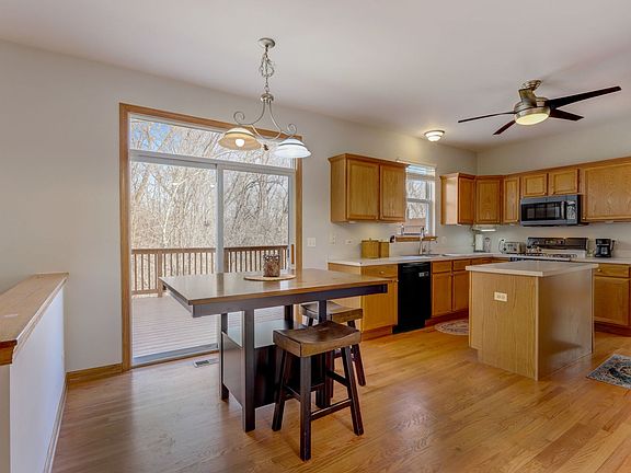 Nice and spacious 4 bedroom home with walkout basement in Renaux Manor Subdivision. Premium lot backing up to Great Western Trail. Home 2340 square feet with an open concept living space, gleaming hardwood flooring on main level, some new hardwood was added last Summer and was refinished as well. Large kitchen with Island and all kitchen appliances, huge deck was stained in 2023, family room with fireplace and laundry on main level for your convenience. Use your imagination to finish the walkout basement which has new French doors and backs up to the Prairie Path. Updated plumbing in 2023 includes new sump pump, new reverse osmosis, water heater, humidifier and new water softener! Electric Dog Fence and Collar are included and Roof 2015.