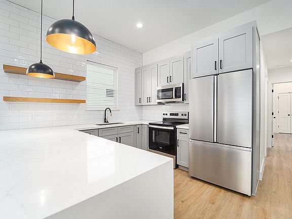 Just completed and ready for immediate move in! Includes all new appliances (washer/dryer, fridge, oven, dishwasher, microwave), no carpet and zero-maintenance landscaping. This property has 1 unit upstairs and 1 unit downstairs with each unit containing 2 bedrooms and 2 baths. This beautifully designed unit features spacious bathrooms with luxury tiles that extend to the ceiling, creating a spa-like retreat for your daily routine. The designer kitchen is a true showstopper, equipped with extra tall cabinets for ample storage, stunning waterfall edge quartz countertops, and floating white oak shelves. A luxury backsplash, also extending to the ceiling, adds an additional layer of sophistication. The living rooms are enhanced by a custom designer accent walls, all located seconds from The Heights and all it has to offer.