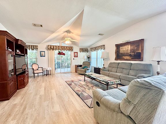 This spacious home offers 1,900 square feet of open living space, nestled on a private lot that ensures peace and tranquility. The expansive screened lanai provides the perfect spot to sit back, relax, and enjoy the serene surroundings. The home features two generously sized bedrooms, two bathrooms, and a large den, along with a two-car garage. The kitchen is thoughtfully designed with ample storage, plenty of counter space, a convenient island, and a spacious pantry. Its open floor plan makes it ideal for hosting and entertaining guests. Additional highlights include a brand-new roof and an AC system that is only 1.5 years old, ensuring modern comfort and efficiency. This home is a must-see!