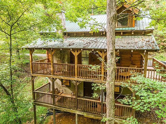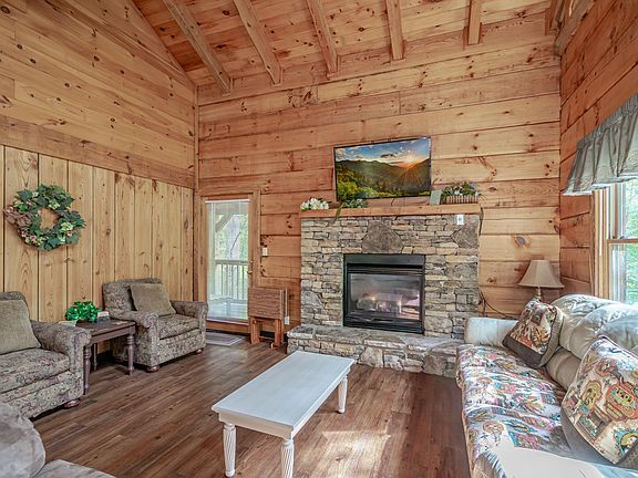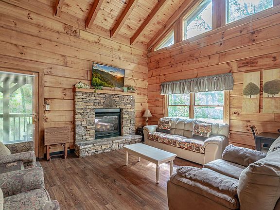 This log cabin with rough cut lumber on interior walls is a true rustic, mountain paradise. Sitting on an acre lot, you can relax & take in the surroundings of the woods with much privacy and absolute solitude. Doing well as an overnight rental, easily generates $42k but could be increased if you made some minor changes. Having a bathroom on each level, the loft was converted to an enclosed bonus sleeping area with a unique barn door opening overlooking the great room. The owners have consistently maintained and improved the cabin throughout the years with new flooring, new kitchen appliances & commercial bedroom furniture with new mattresses. Also owners recently refurbished the fireplace and replaced the gas logs, replaced the well pump, replaced the roof and the Hvac within the last 2yr