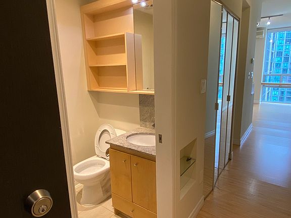 Indulge in luxury living at its finest! This southwest-facing junior 1-bedroom apartment, situated on the 29th floor, offers abundant sunlight and breathtaking views throughout the day. Whether it's your morning coffee or evening unwind, the balcony beckons you to soak in the stunning vistas and find moments of tranquility. Inside, a thoughtfully designed interior awaits, featuring a cozy fireplace, a convenient computer desk, and meticulously crafted closet organizers. Enjoy added privacy and comfort with blinds included in the suite. Discover amenities tailored to meet your every need, including a swimming pool, sauna, hot tub, modern gym, and party room, all conveniently located within the building. With 24-hour security and concierge services, your safety and peace of mind are assured. Plus, all utilities are included in rent!