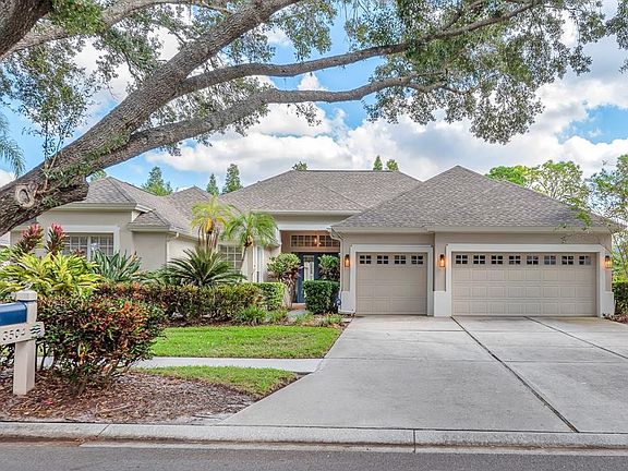 Welcome to River Hills, an elegant guard-gated community known for its tree-lined streets, resort-style amenities, and stunning golf course views. This beautifully updated four-bedroom, four-bathroom home with a three-car garage offers over 3,100 square feet of thoughtfully designed living space, blending timeless charm with modern comfort. Beautiful curb appeal greets you from the moment you arrive, with manicured landscaping enhanced by new landscape lighting added in 2023. Step through the double front doors into an inviting foyer that opens to a formal living and dining room combination, with pocketing sliding doors to the screened lanai, perfect for entertaining or celebrating special occasions. High ceilings, crown molding, and abundant natural light create a warm and open atmosphere that carries throughout the home. The kitchen is both stylish and functional, featuring quartz countertops, 42-inch wood cabinetry with under-cabinet lighting, designer tile backsplash, and a reverse osmosis water filtration system, along with a cooktop, built in oven, microwave and a dishwasher. A charming breakfast nook overlooks the sparkling pool, making it an ideal spot to enjoy morning coffee or casual family meals. The family room, located just off the kitchen, offers an impressive view of the outdoor living area through triple pocket sliding glass doors, allowing the beauty of the outdoors to flow seamlessly inside. The primary suite, set behind double entry doors, serves as a private retreat. It features a tray ceiling, private access to the pool through sliding glass doors, and a luxurious en-suite bathroom with split vanities, a oversized walk-in shower, and an expansive walk-in closet. Nearby, a dedicated home office with glass French doors and custom built-in shelving provides the perfect space for working remotely or managing household affairs. Three additional spacious bedrooms are situated on the opposite side of the home, offering comfort and privacy for family or guests, and share two beautifully updated full bathrooms. Step outside to the screened lanai, where a sparkling pool and spa take center stage. The covered seating area provides the perfect setting for outdoor dining or relaxing afternoons, and an outdoor pool bath adds convenience for guests. The backyard landscaping enhances both beauty and privacy, offering a peaceful buffer from golfers while still enjoying the serene view of the course. This home has been lovingly maintained and thoughtfully enhanced with modern improvements throughout. The tile roof was replaced in 2022, while solar panels installed in 2023 bring energy efficiency and reduced utility costs. Wood flooring added in 2023 runs throughout the home, complemented by ceramic tile in the bathrooms, creating a clean and cohesive look with no carpet. All lighting fixtures and bathroom finishes were refreshed in 2023, while updated ceiling fans were added in 2024 for improved comfort and style. A new water softener system was installed in 2024, and the dual HVAC systems were replaced in 2020 and 2023 to ensure year-round comfort. Even the garage has been upgraded with overhead storage racks that will remain with the home.