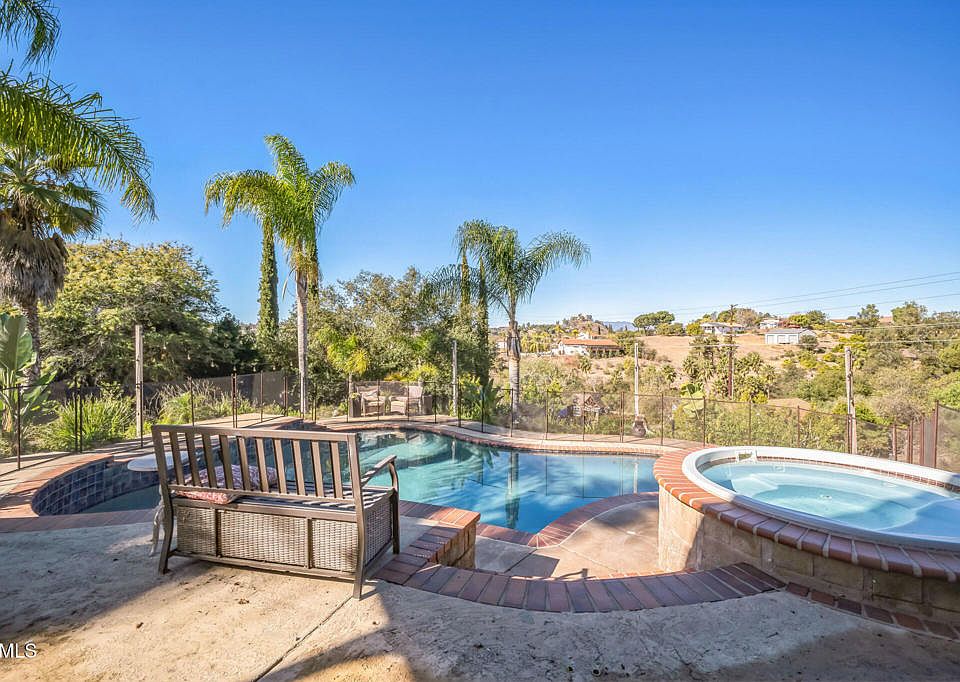This home is priced to sell! Situated on 2.35 usable acres, this wonderful gated property offers breathtaking panoramic views of rolling hills and stunning sunsets, providing a daily sense of peace and inspiration. The main floor is open and spacious, featuring a large center island in the kitchen, a generous family room, a dining area, teak floors, and vaulted ceilings. The home includes 3 bedrooms, 3 bathrooms, a home office (or potential 4th bedroom), and a huge bonus room off the carport, highlighted by a pellet stove. Relax on the wrap-around deck and enjoy the beautiful sunsets. The property feels like a private oasis, complete with a sparkling pool for relaxation and entertainment. There is ample space for hobbies, gardening, and outdoor enjoyment.For horse enthusiasts, the equestrian-friendly setup and nearby riding trails make this property a perfect haven. Inside, the large master bedroom offers a spacious walk-in closet, and the master bathroom features a large soaking tub. Enjoy views of the pool from all bedrooms. Move right into this upgraded home. There's nothing to do but unpack! The natural beauty of the area, combined with the sounds of wildlife, creates a serene atmosphere, while the friendly Fallbrook community, with its charming small-town vibe, local wineries, and a short drive to the coast, adds to the appeal. The property is fully fenced, with additional amenities including a concrete driveway, tankless water heater, propane tank, and newer septic tank. Other features include a sand arena, pasture areas, and two 'as-is' outbuildings. With room to spread out, entertain, and enjoy life's simple pleasures, this home is the perfect blend of comfort, beauty, and opportunity. With 2.35 acres, the possibilities are endless!