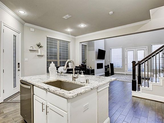 Recent construction in gated community, FIRST FLOOR living with open concept kitchen and living. Living room boasts modern fireplace, hardwood floors, and dramatic 20 foot ceilings. Island kitchen with white shaker cabinets, granite and stainless appliances. Master on the 2nd Floor. Spacious master suite has balcony and huge walk-in closet. Luxurious master bath has separate vanities, frameless glass shower and soaking tub. Secondary bedrooms on the third floor are large enough for king beds. Community has grassy areas fit for dog walking. Zoned to highly sought-after Garden Oaks Montessori.