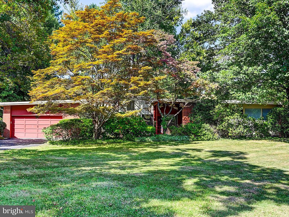 Enjoy easy living in this striking sprawling mid-century modern home with 2 car attached garage on one of the largest corner lots (.97 acres) in the neighborhood. The sun drenched living room & dining room has expansive walls of glass, high beamed ceilings & a brick floor to ceiling fireplace. The eat-in kitchen offers abundant cabinetry, double wall ovens & a convenient main level laundry room. The spacious primary suite features multiple closets & an updated bath with tiled shower. Two additional bedrooms & another full bath complete this level. The bright walkout lower level has lots of windows & includes a large family room with door to rear yard, 4th bedroom currently used as an office & another full bath. A large storage shed provides space for extra storage. The serene parklike rear yard is a wow! There is also an irrigation system & fountain, 3 zones heat & AC replaced 2025. Don't miss this one!