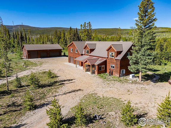 Discover your dream retreat w/ this fully furnished home, appraised at over $1M & set on a sprawling 5-acre lot, this magnificent 7 bedroom 3 bathroom property boasts breathtaking views of the Colorado Rockies & is constructed out of large post & beam logs, exuding cabin charm & elegance. Located just outside Gould, CO, this home offers breath taking mountain peak views, creek access, & opportunities for hunting, ATVs, snow mobiles, & a place to host & entertain multiple guests, or just a place to relax. The home sits towards the back of the 5 acre wooded lot & offers property access to the South Fork Michigan River. All 7 bedrooms come furnished w/ multiple beds. The spacious game/great room is perfect for large gatherings & hosting friends or you can retreat to the reading loft & enjoy a good book. The kitchen features a double oven, center island, & is open to the dining/living rooms. Cozy up by the wood burning fireplace on those colder days. Living spaces are warmed by electric heat, while well water ensures a sustainable water source. A mud room off the garage & another staging room at the front offer practicality for outdoor activities while a backup generator guarantees peace of mind. The large attached 4 car garage includes the air compressor & a place to park your toys out of the weather. The 24 x 48 detached shop offers further opportunities for storage/work. With its stunning views, exceptional amenities, and prime location, this property offers a unique blend of luxury and lifestyle. Don't miss out on this extraordinary opportunity!
