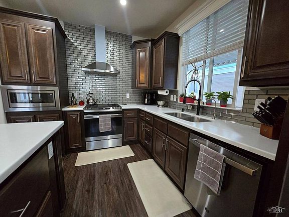 OPEN HOUSE Oct. 4, Sat. 11am-1pm. 3505 Alpine Blvd. Spc 41, Alpine, CA 91901. Welcome to your new home! Must see. This stunning 3 bedroom, 2 bath manufactured home offers modern comfort, stylish finishes, and plenty of upgrades throughout. The open concept layout features a spacious living room filled with natural light, a contemporary kitchen with upgraded cabinetry and solid surface countertops and an island. The stainless steel appliance package includes a refrigerator, a dishwasher, range and microwave. There is also a large dining area which is perfect for gatherings. Soaring 9' ceilings make this home feel even more spacious; crown molding and wide base boards decorate this home. Other top upgrades include dual pane tempered-glass windows and hardwood cabinets. The primary suite includes a large private bath with a 5' tiled walk- in shower featuring glass doors, dual sinks and generous closet space. The additional bedrooms are ideal for guests or a home office. Step outside and enjoy the backyard- perfect for relaxing, entertaining, or a weekend Barbeque. Don't miss the chance to own this move-in ready home that combines comfort, style, and outdoor living! Close to Viejas Casino, the Casino Hotel & the Outlet Center. Albertson's and Janet's Cafe are close by as well. CAV130AZ2225311A-B.