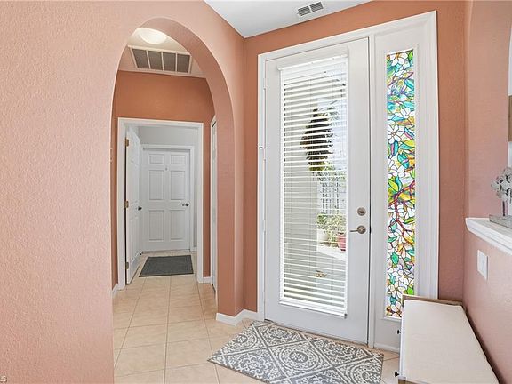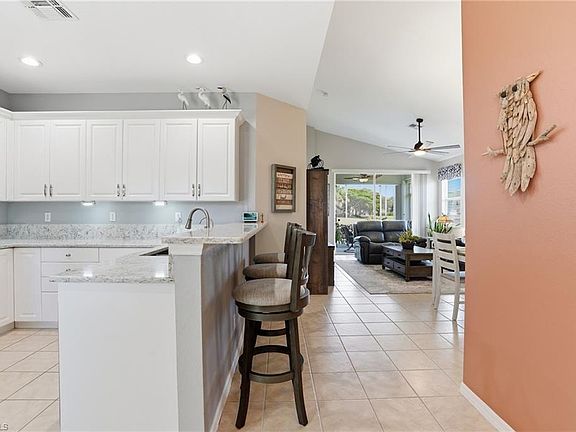Stunning 2 Bedroom + Den Lakefront Villa in Province Park Discover serene lakefront living in this beautifully maintained 2-bedroom plus den, 2-bath attached villa with a 2-car garage, offering an inviting open floor plan and exceptional indoor–outdoor flow. The gourmet kitchen features stainless steel appliances, quartz countertops, white cabinetry, and a charming breakfast area, opening seamlessly to the spacious great room with designer lighting and a formal dining area. Enjoy tile and carpet flooring throughout and a large, light-filled great room with sliding doors leading to an expansive screened-in lanai—perfect for relaxing or entertaining. The lanai showcases a new jetted, heated hot tub and offers breathtaking lake views, abundant wildlife, and unforgettable sunsets for a truly tranquil setting. Province Park offers fantastic amenities, including a clubhouse, fitness center, resort-style pool, tennis and pickleball courts, and a playground. Ideally located close to I-75, shopping, dining, and RSW Airport, this home offers the perfect blend of comfort, convenience, and resort-style living.