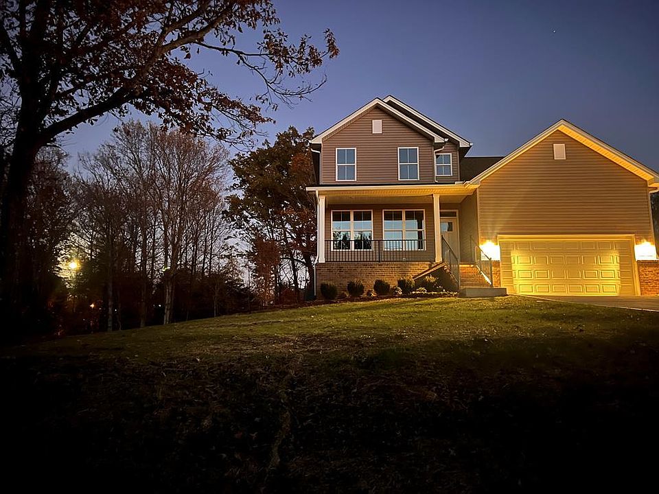 Step onto the inviting front porch and into a modern, thoughtfully designed interior. A warm and cozy fireplace anchors the living space and flows seamlessly into a spacious dining room and kitchen, where floor-to-ceiling cabinetry provides both elegance and abundant storage. A walk-in pantry and three storage closets on the main level help to keep your life organized. The main-level primary suite is a peaceful retreat filled with natural light. Its spa-inspired bathroom features lighted mirrors and a beautiful tile shower, creating a luxurious experience every single day. Two additional bedrooms, each with its own ensuite bathroom, offer comfort, privacy, and zero morning conflicts.