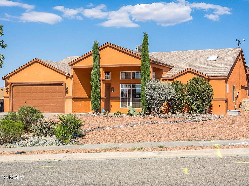 Exceptional 4-Bedroom Home with Organ Mountain Views! This 4-bedroom, 4-bathroom residence combines comfort, elegance, and functionality in one beautiful package. Step inside to vaulted ceilings that create a bright, open atmosphere, and gather in the inviting living area with a cozy fireplace -- perfect for relaxation or entertaining. The grand primary suite is a true retreat, featuring its own fireplace, a spacious sitting area, and two generous closets. Three additional bedrooms and well-appointed bathrooms offer flexibility for everyday living. A versatile flex room provides endless possibilities -- whether you envision a game room, fitness space, or hobby area. Outdoors, the property offers .38 acres of space designed for gatherings, complete with Organ Mountain views, low-maintenance landscaping, vibrant rosebushes, and mature trees. The expansive yard provides a perfect backdrop for memorable get-togethers. This home blends thoughtful design, inviting details, and plenty of room to live and enjoy