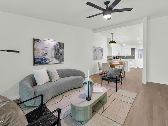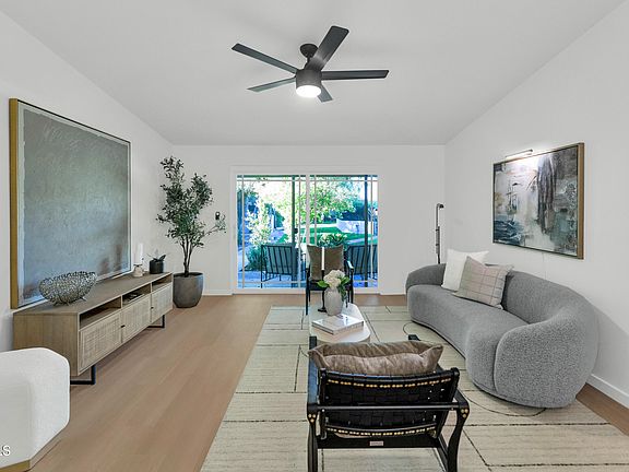 Experience effortless living in this beautifully updated 2-bedroom, 2-bath condo in one of the Camelback Corridor's most charming, tree-lined communities. Thoughtfully refreshed from top to bottom, this ground-floor residence with no unit above blends modern design with a warm, inviting feel. The open living space is bright and airy with wide plank flooring, fresh paint, and updated lighting. The redesigned kitchen features quartz countertops, custom cabinetry, stainless steel appliances, and a peninsula that connects seamlessly to the dining area. Both bedrooms are spacious, and the bathrooms feature clean, timeless finishes. Enjoy a private patio overlooking the lush courtyard, community pool, and covered parking — minutes from LGO, Postino, and Biltmore Fashion Park.