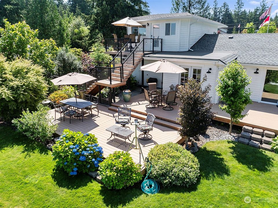 This beautifully renovated home is nestled just a short stroll from the heart of Historic Gig Harbor. Not only does it offer a welcoming and comfortable living space, but it also brings in a generous income from the 1 bedroom, 1 bath attached ADU. The main house, all on one level with 3 bedrooms and 2 1/2 bathrooms, features an inviting open concept. The stunning kitchen with its expansive island flows seamlessly into the great room with inviting fireplace, providing views of the picturesque grounds. You will find even better views of Gig Harbor Bay from upper deck. This home is the perfect blend of beauty and practicality.