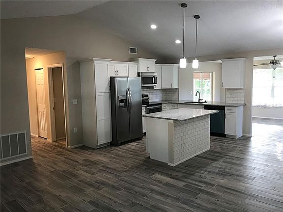Beautifully Remodeled 2/2/2 in the desirable Seven Springs area. Home has been freshly painted inside and out. New wood look tile in all the main areas with new carpet in the bedrooms. The kitchen is open to the rest of the home with new white shaker style cabinets with crown molding,granite,backsplash, and SS appliance package. Both bathrooms have new vanities, mirrors, toilets, lighting, and tiled showers. The A/C is new with warranty, and the flat roof is also brand new. No rear neighbors and a water view complete the home.