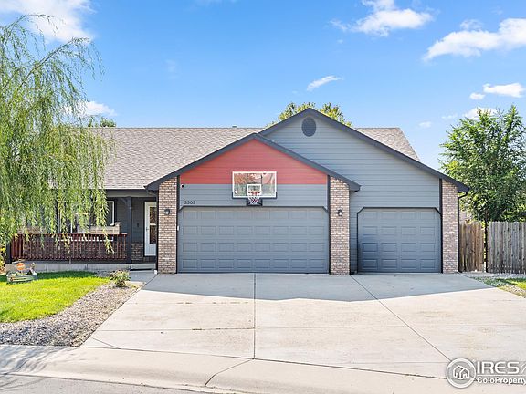 Stunning 3-bedroom, 2-bathroom home with a bright, open floor plan and soaring ceilings. The spacious primary suite includes a walk-in closet with custom shelving for optimal storage. Step outside to a beautifully upgraded back patio featuring a lovely trellis, a private dog run, and an included hot tub-ideal for unwinding or hosting guests. The expansive 3-car garage and extra-large driveway offer plenty of parking and storage space. An unfinished basement with some framing already in place presents a fantastic opportunity for expansion, whether you're looking to add more living space or personalize it to your needs. Conveniently located near shopping, schools, and several parks, with easy access to Highway 34, this home offers the perfect blend of comfort and convenience. With central A/C and a spacious lot, this property is a true gem in Evans! *extra shelving in laundry room can be removed to add side by side laundry, garden boxes included with sale*