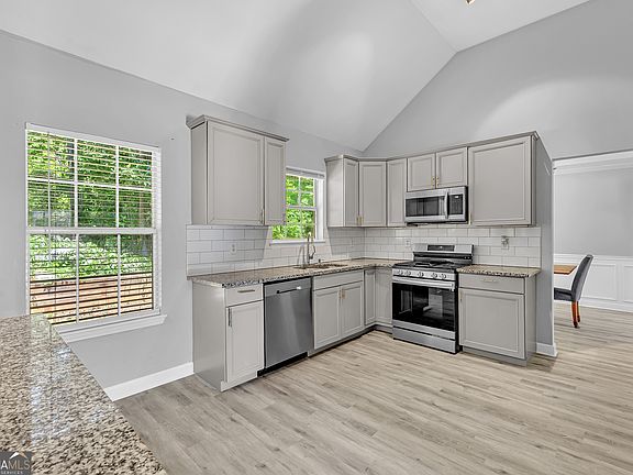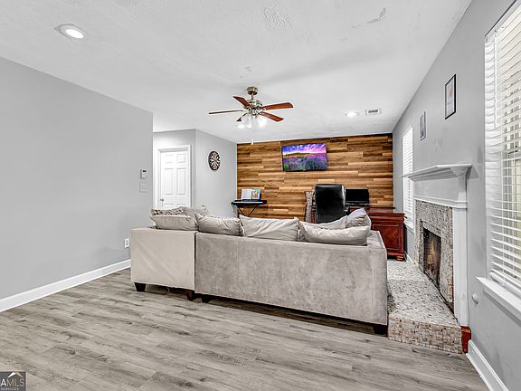 Beautiful house with large rooms, beautiful neighborhood for a beautiful family. Entering in you will find thegreat room upgraded with a wood panel wall that compliments and gives accent the living space, There's a full size dining room with enough space for all your dining furniture needs that has access directly into the kitchen. The kitchen has new stainless appliances, granite counter tops, a free standing island with extra storage room.thats classic and versatile that is overlooking a large family room with gas log fireplace. The powder room and laundry room is accessible when coming into the home from the garage. Back yard has been upgraded with a wooden awning to enjoy the outdoors anytime, in the rain or sunshine over the patio for all your family gatherings. The staircase located at the front door will lead you to the second floor, which has three comfortable bedrooms that of course you will find the spacious master bedroom with a spacious bathroom with a separate tub and shower, and a walk in closet. This home is close to many shopping centers and countless restaurants, five minutes from Highway i285 and ten minutes from Highway i675 and ten minutes from the Airport. There are many possibilities that you can call this house your family home in the near future. Call to see this home today. Lease Purchase Available call for details Now.