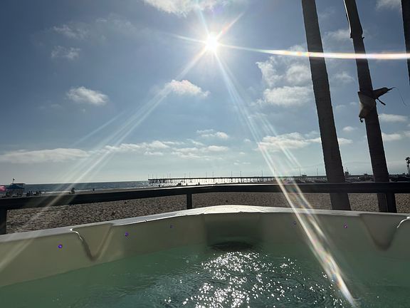 Private Wellness Amenities: Relax in your own sauna and outdoor jacuzzi, set on the patio for the ultimate coastal retreat.