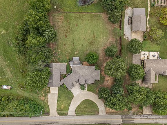From the moment you walk through the arched double iron doors, this all-brick home on 1.08 acres makes a statement. Inside, 17’ vaulted ceilings, hardwood floors, and natural light bring warmth and grandeur to the living area anchored by a beautiful fireplace. The kitchen stands out with granite countertops, rich wood cabinetry, black stainless appliances, double oven, oversized island, and walk-in pantry. Adjacent is a walk-in laundry room with custom shelving and cabinetry. The primary suite offers a peaceful retreat with tray ceiling, spa-like bath featuring a jetted tub beneath a chandelier, walk-in shower, dual vanities, and large walk-in closet. Upstairs includes two bedrooms, a full bath, and a versatile loft—each with its own walk-in closet. Enjoy outdoor living on the composite deck with pergola or covered porch. The heated and cooled 26x50 attached shop features a finished bonus room—ideal for hobbies, business, or storage. Refrigerator, washer, and dryer stay! Priced below appraisal! An additional 1.11 acres with 30x48 barn and pond available can be purchased with the property at an acceptable offer.