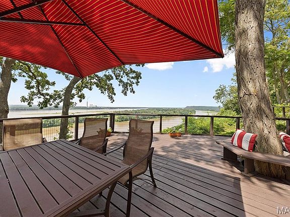Your Mississippi River promontory estate delivers unmatched views and luxury living from its coveted limestone bluff placement, centrally located in the US, plus along a National Scenic Byway. This 6,000 sq/ft lodge-style home sits beside a protected nature preserve, offering both privacy and convenience—just 40 minutes from an international airport and near major city amenities. Built for everyday comfort and large-scale entertaining, it features a soaring 2-story hearth, pub room opening to an expansive deck off the heated in-ground pool and an oversized primary suite with private sitting room having direct access to the full-length upper deck. Rich hardwood floors, exposed ceiling beams, and two well-placed wet bars within gathering areas add warmth and functionality. A walk-out basement with river views is ready for your gym, recreation space, or studio, while a 5-car garage and oversized courtyard provide space for vehicles, basketball, and more. Whether you’re enjoying mornings on the screened in porch over panoramic water views, hosting poolside gatherings, or relaxing in your private oasis, this home delivers the rare combination of scenic beauty, generous square footage, and refined design that makes it a true gem worth adding to your real estate portfolio. Before making an offer on any property, buyer should independently verify all MLS data derived from various sources and not warranted accurate.