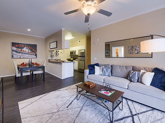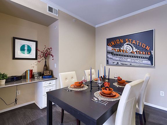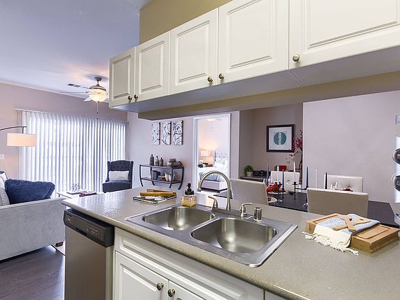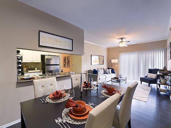 - Exterior features: 9-Foot Ceilings w/ Crown Molding, Balcony, Barbecue, Business Center, Direct Access to Walking Trails, Energy-Efficient Appliances, High-speed Internet Ready, Open-Concept 1, 2, and 3 Bedroom Homes, Oval Soaking Tub, Package Receiving, Pet Park, Pet-Friendly*, Stainless-Steel Appliances, Sundeck, Upgraded Lighting Features*, Wood-Style Plank Flooring