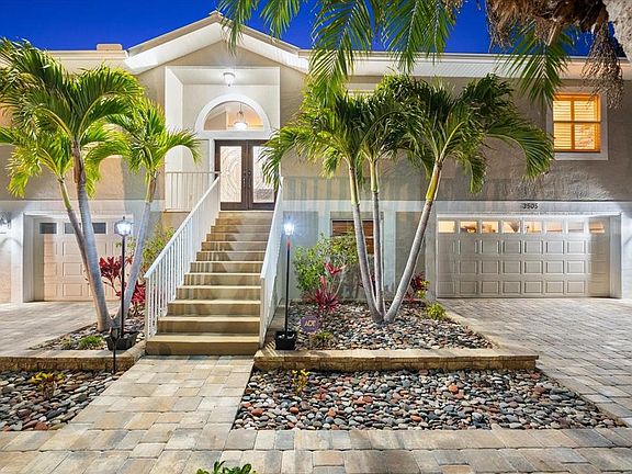 Step into your dream home! This flawlessly updated 4-bedroom, 3-bath elevated residence is the perfect blend of opulence and functionality. This rare opportunity allows you to own a piece of paradise in one of New Port Richey’s most coveted waterfront communities. This home has been meticulously redesigned to provide the finest in modern living. Built in 2001 and extensively renovated with high-end finishes, every detail has been carefully curated to create a space that feels both luxurious and inviting. Inside, natural light pours into the expansive open floor plan, showcasing sleek laminate floors throughout and plush new carpet on the stairway. The chef-inspired kitchen, updated in 2025, is a true highlight, featuring sleek, neutral cabinetry, stunning granite countertops, and high-end stainless steel appliances—flowing seamlessly into the spacious living and dining areas, perfect for both everyday living and entertaining. Each of the four generously sized bedrooms includes a walk-in closet, while plantation shutters (2023) add a designer touch throughout. The downstairs private in-law suite provides exceptional flexibility, complete with its own full bath, new doors, and fresh paint (2024)—ideal for multigenerational living, guests, or potential rental income. The oversized, split-layout garage provides ample space for cars, toys, and extra storage. Step outside, and you'll be greeted by striking curb appeal, with newly laid pavers (2023), a complete exterior repaint (2024), and a new irrigation system to keep the grounds looking pristine year-round. Boat Lift - Owner believes to be 10,000 lbs. Elevated construction ensures peace of mind with no flood concerns, giving you a home that's high and dry. You'll enjoy access to a host of exclusive amenities, including a private boat ramp, resort-style pool, tennis courts, and a vibrant clubhouse. Optional membership to Gulf Harbors’ private beach club is also available, allowing you to enjoy the ultimate coastal lifestyle. Whether you’re looking for your forever home, a luxurious snowbird retreat, or an investment that will stand the test of time, 3505 Seaway Drive delivers everything you’ve been searching for—refined, relaxed, and ready for you to move in. This is truly the Florida lifestyle at its finest, and it won’t last long!