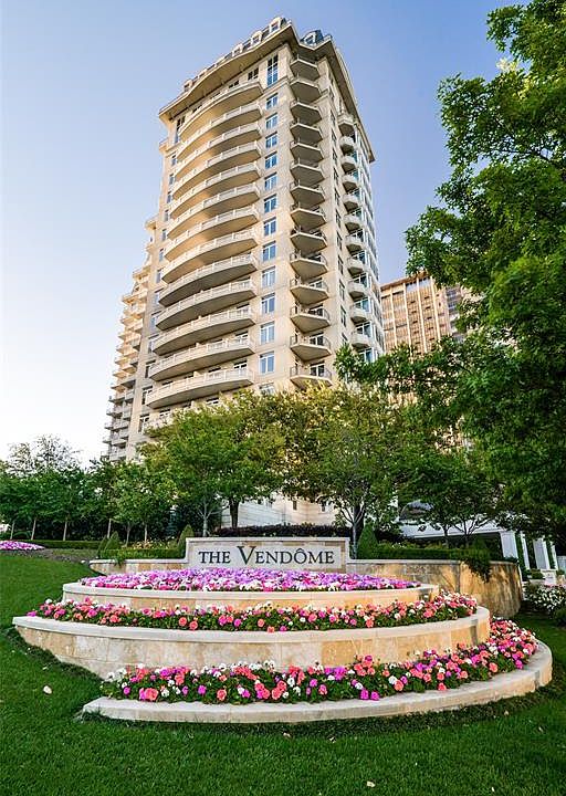 This much sought-after F unit floorplan offers luxury living that can only be found at the Vendome. The home offers outstanding views of the pool area with lush landscaping that can be seen from the multiple French doors that open onto each of the two balconies. Custom lighting, wood floors, and exquisite moldings are just a few of the home's outstanding features. The kitchen features SS appliances, including a gas range, granite countertops, and wood cabinetry. The owner's retreat is outfitted with two walk-in closets and a beautiful Carrara marble bath with a separate shower and tub for soaking and relaxing. Additional appointments include two well-positioned parking places, an extra storage space