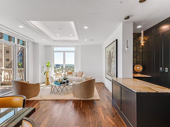 Recently renovated with over 6,600+ SF of luxury urban living! Restricted access elevator opens directly into both levels of this custom, contemporary, two-story penthouse. Beautiful walnut floors, intricately detailed Sapele Mahogony paneling, four spacious bedrooms, including a large primary suite with terrace and stunning views of downtown. Home features flexible living and entertaining spaces, including a 2,200-bottle wine room. Chef's kitchen with Calcutta stone countertops, SubZero refrigerator and Wolf commercial gas oven adjoins a large dining room with wet bar. Home conveys with four parking spaces and two storage spaces.