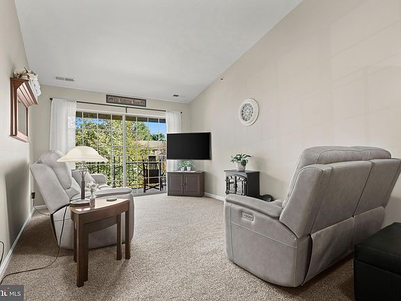 Welcome to The Pointe in Abingdon! This beautifully updated third-floor condo offers over 1,100 square feet of living space, featuring 3 bedrooms and 2 full baths designed for comfort and style. The bright, open living area boasts cathedral ceilings and access to a private balcony, perfect for relaxing outdoors. The kitchen showcases maple cabinets, quartz countertops, a mosaic glass backsplash, a single stainless steel sink, and newer appliances. An inviting breakfast nook adjacent to the kitchen provides the perfect spot to enjoy your morning coffee or casual meals. The primary bedroom includes an ensuite renovated bath with a walk-in shower and single quartz vanity, while two additional bedrooms with soft carpet offer flexibility for guests or a home office. Additional highlights include fresh paint throughout and a stackable washer and dryer conveniently located in-unit. Enjoy top-floor privacy and maintenance-free living in this desirable Abingdon community, just minutes from shopping, dining, and major commuter routes. Upgrades include: Newer A/C unit, newer water heater, new appliances (refrigerator & dishwasher), new stackable washer/dryer.