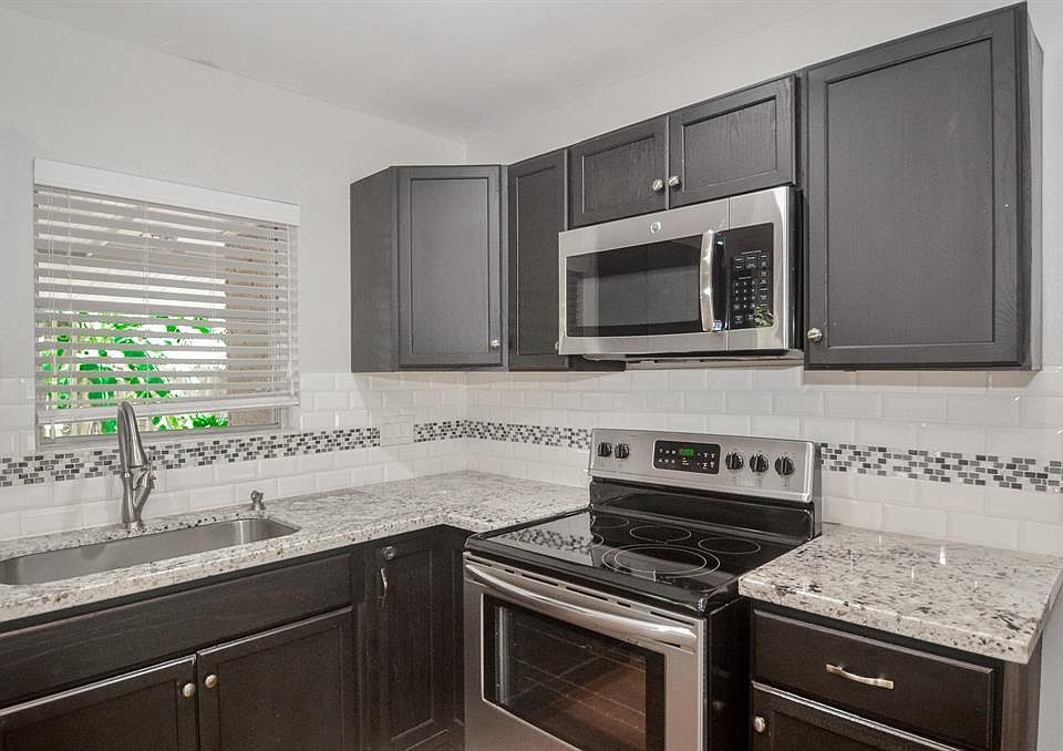 Exceptional Med Center home with rare 4th bedroom, just remodeled, zoned to Bellaire High and ready for move-in. Open floorplan w/flexible living & dining areas & wood floors. Great flow to all-new kitchen featuring dark cabinets, granite counters, new stainless appliances & large island workspace. Private mastersuite w/updated bath. Bedrooms feature clerestory windows w/lots of natural light & privacy. 4th bedroom also ideal home office. Covered patio. Pets on very limited basis-no large dogs.