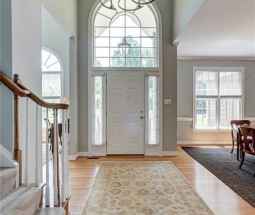 Classic brick transitional home located on a private lot. Impressive 2 story foyer greets you as you enter the front door! 1st floor features wood floors & open floor plan. Entry way flows into a formal dining room with chair and crown moulding and is adjacent to the living room/office space with vaulted ceilings. The kitchen offers an open lay out w/ an island, breakfast nook, granite counter tops, stainless steel appliances & flat top range. Kitchen opens to a eat in dining area & leads to a large family room w/ gas fireplace. French doors off the family room lead to the large beautiful, tranquil, manicured back yard and stone patio for entertaining. The 2nd floor features large master suite w/ walk in closets & spacious bath with jetted tub & tiles custom shower. Additional 3 bedrooms upstairs w/ hall full bath, Ample attic space and large walk in laundry room. Conveniently located off the Robious road corridor w/ close access to 288, shopping and dining.