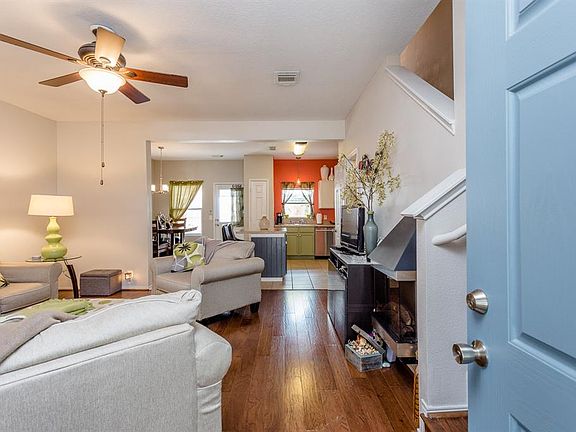 HIGH & DRY NEVER FLOODED! Lovely town home in gated community of Canyon Gate at Legends Ranch. Very well maintained and impeccably clean. Brand New Carpet, Recently Replaced Water Heater & AC Condensing Unit. Welcoming and cozy covered front porch. Walk into an open floor plan, spacious family room, kitchen island, and breakfast bar. Game room and two bedrooms upstairs. Enjoy the recently installed extended wooded deck in the backyard and all the great amenities Canyon Gate has to offer such as 24 hour guarded entry for safety and privacy, walking trails, splash pad, exercise facilities, pool, playgrounds, and a wonderful clubhouse. Exterior painted a year ago and new fence two years ago!
