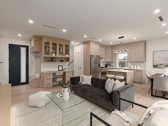 Quiet tree lined streetScandinavian inspired island kitchenFisher paykel appliancesQuartz counters and backsplashUnder cabinet led lightingCustom millworkPrimary suite